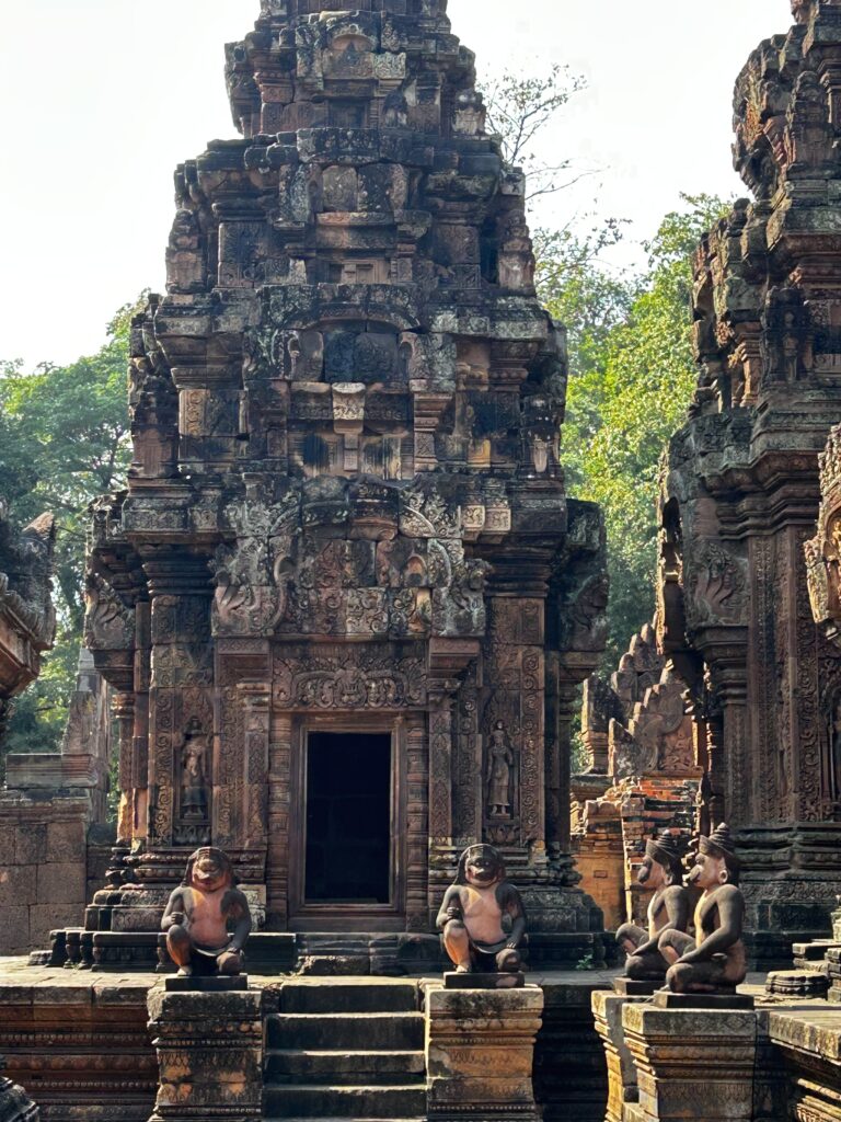 Selle taksosõidu raames külastasime 3 templit – Banteay Srei ja Banteay Samré olid mul enne nimekirjas, taksojuht soovitas veel Prasat Beng Mealea templit, see oli esimene külastus. Minu lemmik neist kolmest oli Banteay Srei punasest liivakivist väike armas nn naiste kindlus pühendusega hindu jumalale Shivale. Ta on koostöös Šveitsiga suurepäraselt taastatud ning selles templis on imeilusad reljeefid, nikerdused ja kujud. Ka Banteay Samré oli äge, suurem kui Srei, teda peetakse Angkor Wati miniatuurseks mudeliks ning tempel on ehitatud pühendusega Vishnule. Prasat Beng Mealea oli ka äge Vishnule pühendatud dzunglitempel, see on meelega jäetud dzungli meelevalda, näitamaks kuidas loodus vallutab. Templi sees saab mööda rada kõndida ja puud pakuvad mõnusalt päikese eest varju.