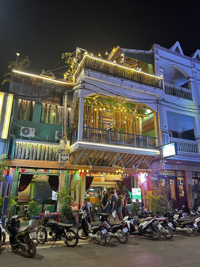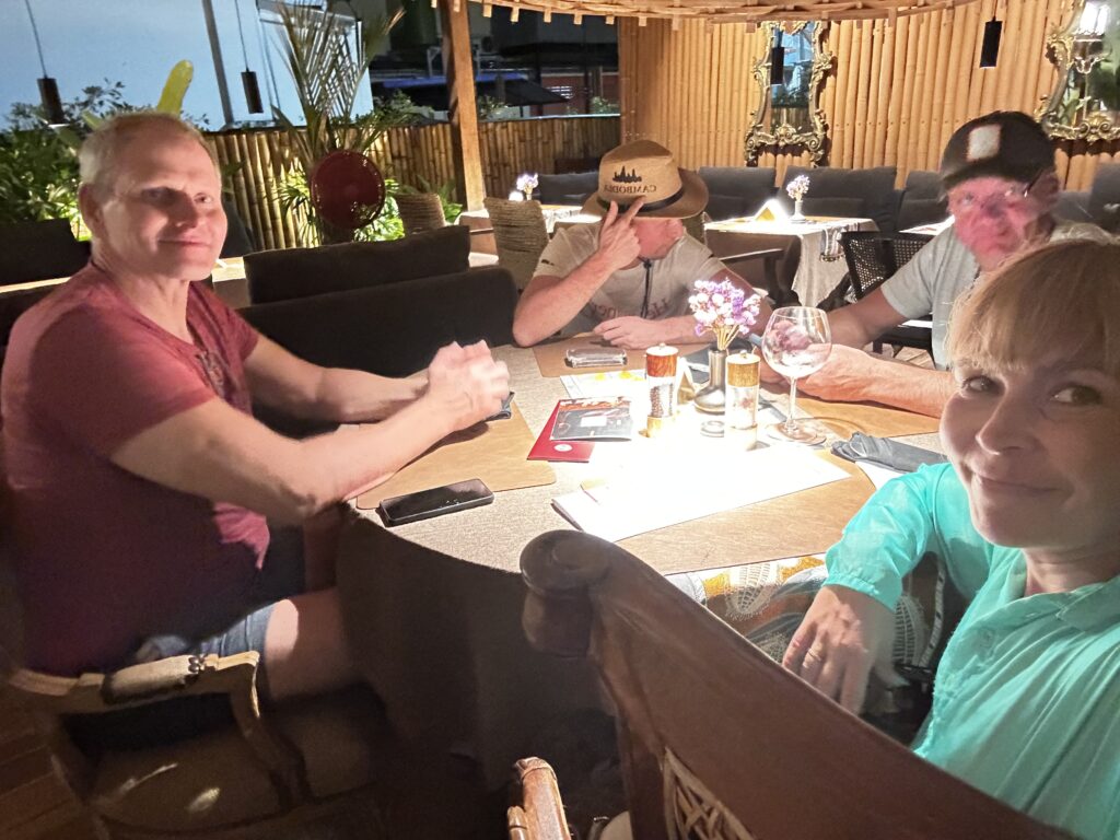 Õhtuks saime hotelli, valisin hotelli selle järgi, et oleks Angkori templitele lähedal, pigem soodne ja linna sees, basseiniga, 3 toaga et saaksimee mugavalt plaane arutada ja muljetada ning et oleks köök kus saame ise hommikusööki teha. BB Angkor Residence osutus valituks, jäin väga rahule, saime isegi bassus sulistada, mis mõnusalt jahutas. Ainus mis puudu oli dushigeel ja shampoon, küll aga seep oli olemas. Käisime linna peal jalutamas, et oli nädalavahetus siis nn baaride tänaval oli korralik melu ja lärm aga see oli omamoodi äge. Maandusime Kambodža autentse toidu restoranis The Christa Restaurant Bar, mis meenutas mulle Brasiilia Jeri 1 ägedat restot. Teenindus oli hea ja toit ka.