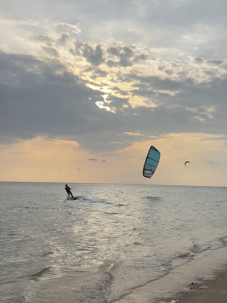 Lohedest kasutasime 95% ajast kõige suuremaid, mina 15m ozone edge lohet, Aivar nt 17m Ozone Zephyr lohet, Tarmo 14m ja Rain kordamööda mis meil parasjagu vaba oli. Esimestel päevadel oli vesi kõrge ja lohesid üles alla võtta pikal inimesel oli ok, lühikestel khmm (ma ootasin mõõna). 😀 Kuid paari päeva pärast oli veetase pigem madal ja siis oli minek lihtsam. Accrokite juures oli vees väga teravaid kive, seega tallaga sussid tasuks jalga panna. Söömas sai käia kõrval restodes.