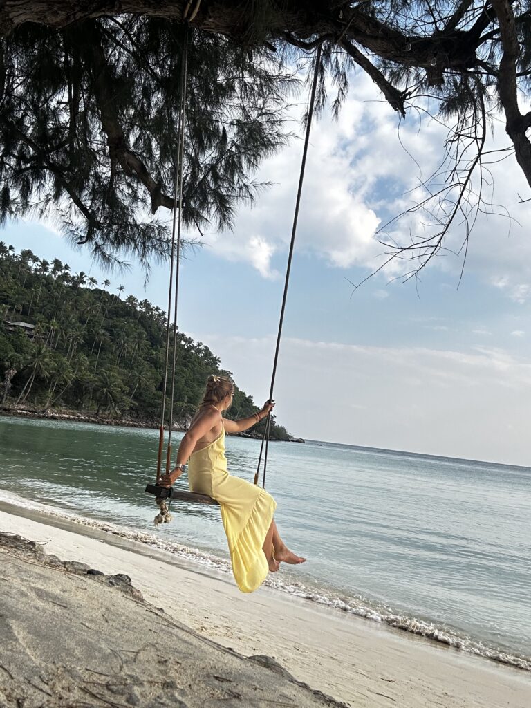 Tagasi Singapuris, võtsime kiirelt oma pagasi holdist, pakkisime asjad ringi ja läksime Scoot airlinesiga Ko Samui lennule (Tai), koos surfipagasiga oli lennu hind 350 euro kanti. Ma olin ette tellinud takso (kuna meil suur pagas ja oli vaja suurt bussi) lennujaamast sadamasse, et Koh Phanganile sõita nii et kõik sujus mugavalt. Sadamas tasusime oma kiirpaadi eest 16 eur, lohistasime mööda väga lihtsakoelist puidust muuli oma kotid paati, kohe läks pimedaks, meri lainetas, kiirpaat hüppas kuid 30 minutit hiljem olime Koh Phanganil, kus samamoodi tervitas meid ligadilogadi puidust muul, hüppasime kommunity taksosse – need on taksokastikad – juht on kabiinis ja sõitjad katusega autokastis kahel pikal pingil nii et pagas mahub keskele. Sõidu hind on suht fikseeritud aga mitmekesi tasub ikka veidi kaubelda. Teel hotelli, peatusime panga automaadi juures, kuna Ko Samuil olles selgus et majutaja soovib kogu raha sulas! Nii me siis oma tuhandeid automaadist väljutasime ja ootasime põnevusega, mis edasi saab. Taksos oli 2 itaallast, kellelt küsisime restoranisoovitust (hiljem sinna Fish restauranti ka läksime, super mereanni koht). Btw sularaha on Tais kunn ja Koh Phanganil kaardiga sai maksta pm aint toidupoes. Automaadist väljavõtmine on 6,50 eur nii et pigem võtke vähem kordi välja.