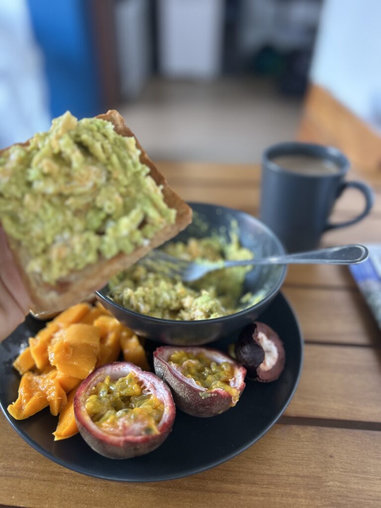 Papaia oli Koh Phanganil mega maitsev, peaaegu nagu Brasiilias. Mangosteenid olid head, passionfruit ja muidugi mangod. Hommikusöögiks tegin nt koguaeg avokaado muna saia ja puuvilju. Lõunaks mina sõin palju pad thaid – lemmik.