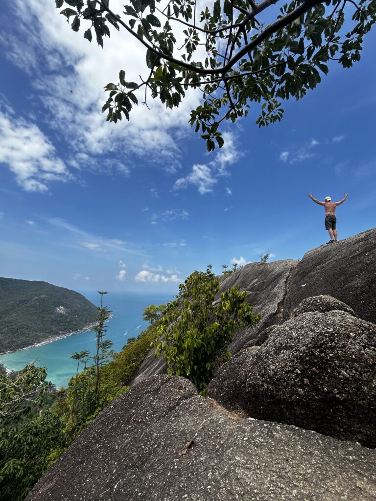 Vaatamisväärsustest bottle beach viewpoint oli muidugi väga võimas. Mäest üles matk pole pikk, aga see nõuab kannatlikkust, joosta ei saa, kogu teekonna vältel on pidevaid tõuse ja ebatasast maastikku. Kõnnid üle juurte, astud üle rändrahnude ja sikutad end viimasel lõigul köitega üles, enne kui puud järsku avanevad ja rannajoon sinu all nähtavale ilmub. Selgetel päevadel muutub vesi türkiissinisest sügavsiniseks avamerel, luues tugeva kontrasti, mis on ülalt vaadates uskumatult muljetavaldav. Meil õnnestus seda ilusat vaadet nautida koos kümnete teiste turistidega. Päris kivirahnu lõpu servani me ei läinud, see on ka tiba ohtlik, oli lausa imekspandav, et seda lubatakse ning isegi beebid kõhul mindi. Jalga soovitaks panna tossud ja veepudel kaasa.